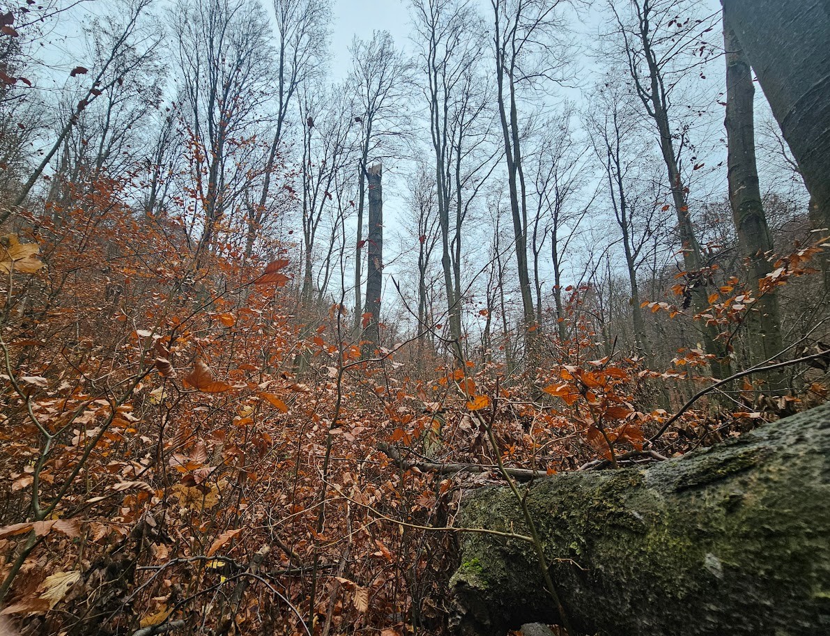 Ahogy körbe néztünk, különböző időpontokban történt természetes bolygatások eredményeként kialakult, eltérő korú és méretű fiatal bükk facsoportokat láthattunk, a csemete korú csoporttól a vékony rudaskorún keresztül a vastag rudaskorú állománycsoportig az idős faállomány kidőlt, vagy törzstörött egyedei helyén kialakult lékekben.